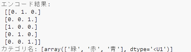 print("カテゴリ名:", one_hot_encoder.categories_)