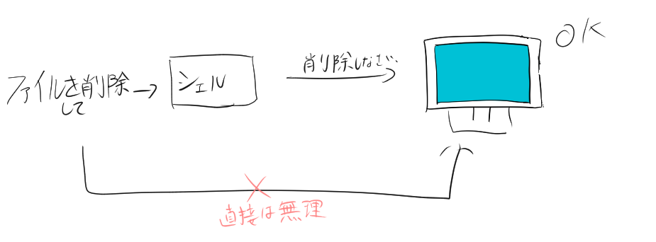 シェルは、私たちの指示をコンピューターが理解できる形に変換し、コンピューターが命令を実行してくれます。いわば「受付」のような役割を果たしているのです。もしシェルがなければ、コンピューターの操作は非常に困難になります。