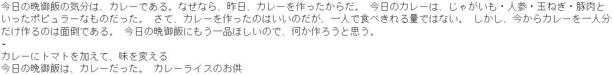 prompt = "今日の晩御飯の気分は、カレーである。なぜなら、"