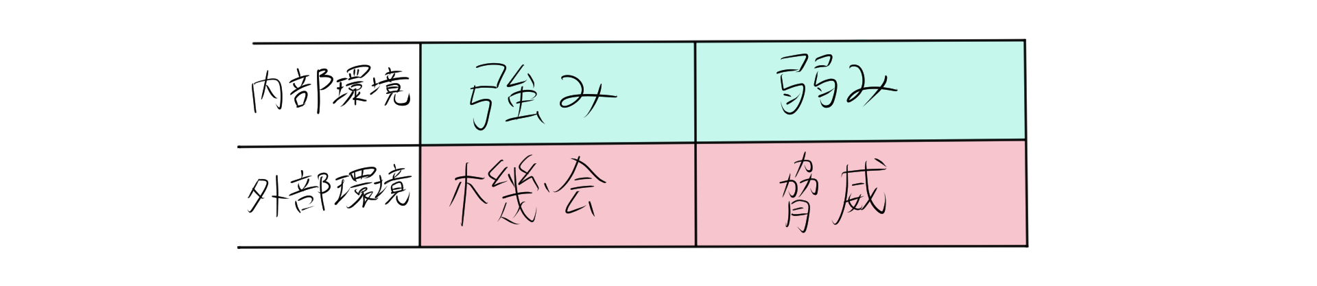 うん、知ってる。内部環境と外部環境を4つの要素に分ける。