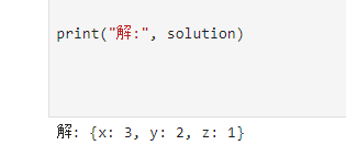 solution = sp.solve((eq1, eq2, eq3), (x, y, z))