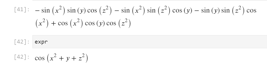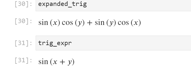 このコードは、三角関数 \( \sin(x + y) \) を展開し、結果を表示します。出力は次のようになります。