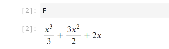 このコードは、関数 \( f(x) = x^2 + 3x + 2 \) の不定積分を計算し、結果を表示します。出力は次のようになります。