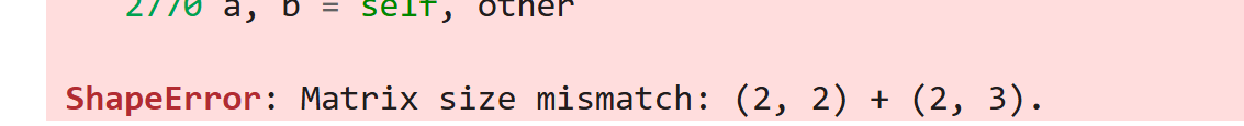 Matrix size mismatch: (2, 2) + (2, 3).