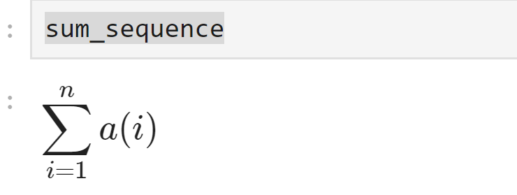 このコードは、シンボリックな数列 \( a_1 + a_2 + a_3 + \ldots + a_n \) の和を計算し、結果を表示します。出力は次のようになります。
