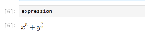 symbolsを使用してシンボル \( x \) と \( y \) を宣言します。- 宣言したシンボルを使って式 \( x^5 + y^{\frac{2}{3}} \) を作成し、表示します。