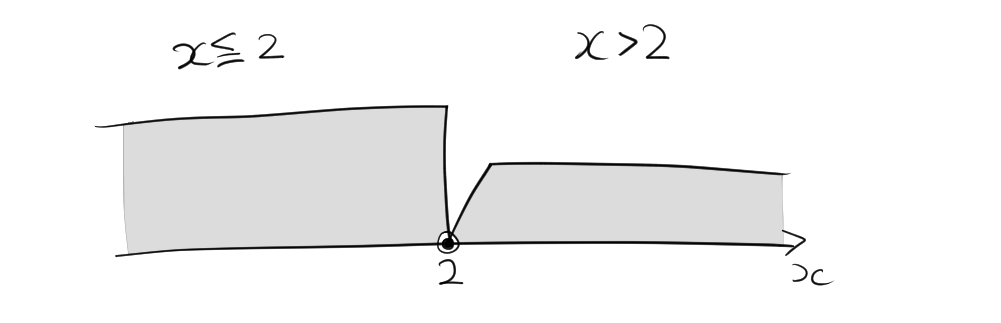 これら2つの不等式を同時に満たす\(x\)は、\(x > 2\) かつ \(x \leqq 2\) です。この場合、解が矛盾しているため、解は存在しません。