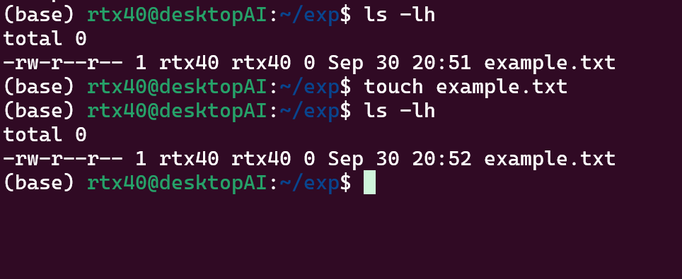touch -a example.txt # アクセス時間のみ更新