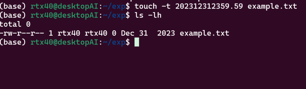 touch -t 202312312359.59 example.txt