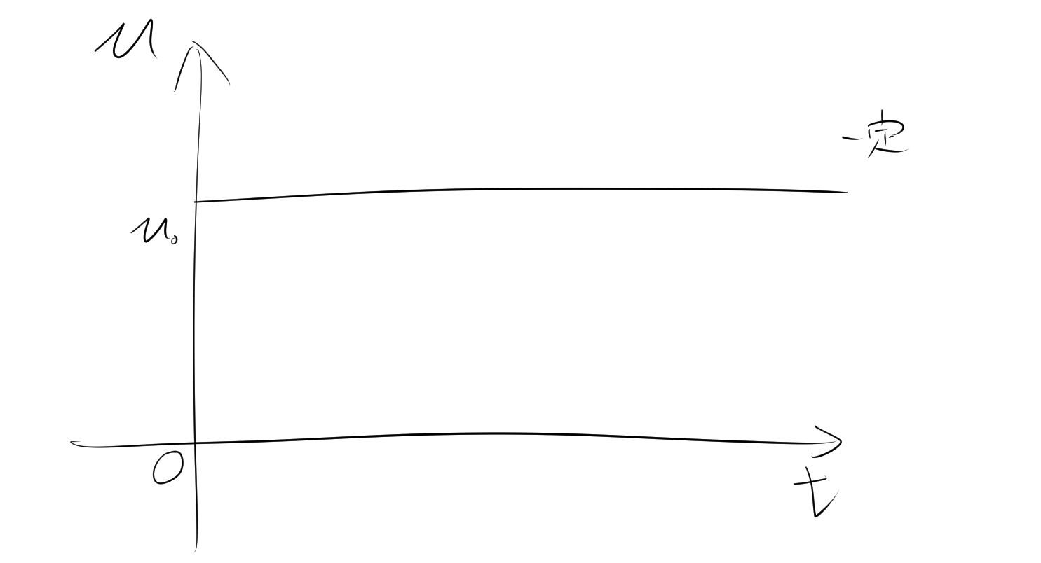 - 縦軸(速度 v): 一定の速度$v_0$を表します。