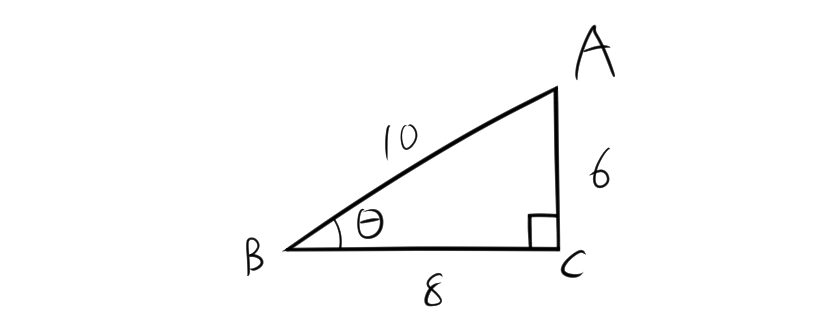 斜辺が 10 で、角度 $θ$ に対するBCの長さが 8 の場合、