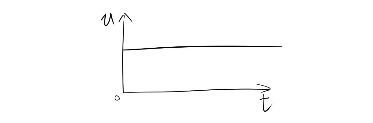 速度が一定の場合、v-tグラフは横にまっすぐな直線になります。これは、物体が一定の速度で動いていることを示しています。