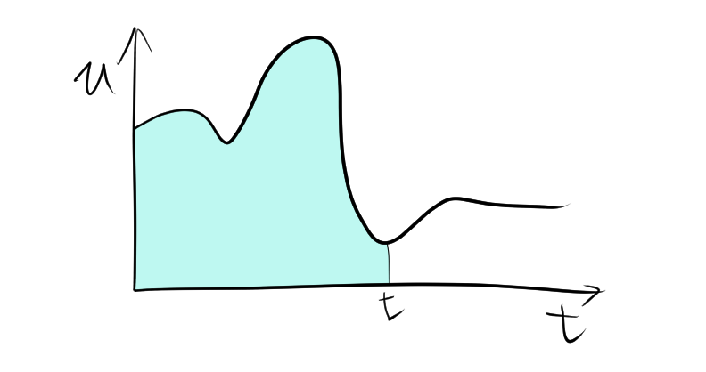 この式では、速度を時間で積分することで位置を計算しています。積分定数 \( C \) は初期位置を示しており、具体的な初期条件に基づいて値が決まります。このことから、v-tグラフの面積が物体の移動距離(変位)であることがわかります。