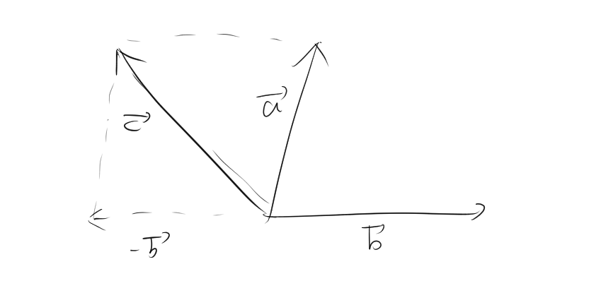次に、2つのベクトル \(\vec{a}\) と \(\vec{b}\) の差 について考えます。ベクトルの差 \(\vec{c} = \vec{a} – \vec{b}\) は、ベクトル \(\vec{b}\) の 逆向きのベクトル(\(-\vec{b}\))を使って計算します。ベクトル \(\vec{a}\) の始点から \(-\vec{b}\) を加えることで、差のベクトル \(\vec{c}\) を求めることができます。