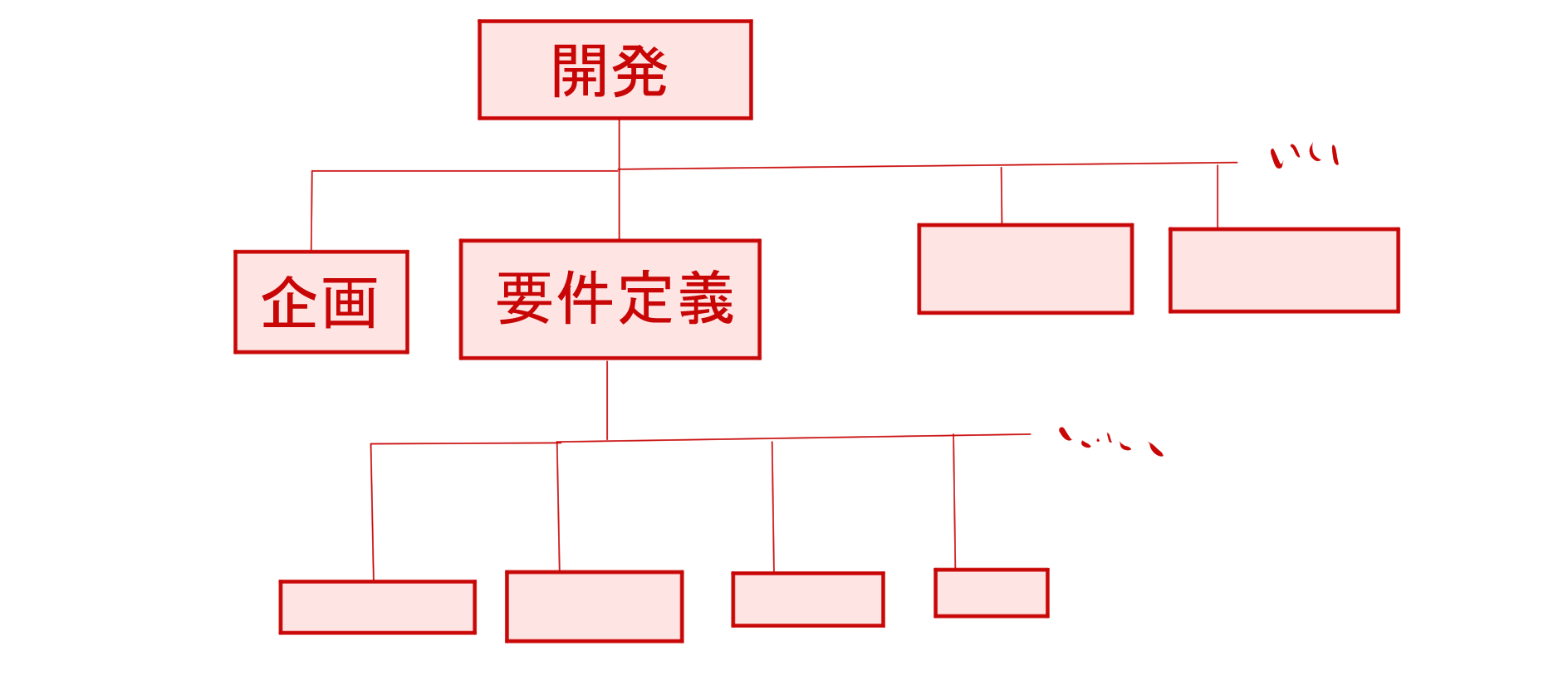 これらを組み合わせると、「作業を細かく分解して構造化したもの」 という意味合いになります。つまり、プロジェクト全体を細かい作業単位に分解して整理し、視覚的に管理できる構造を作ることを表しています。