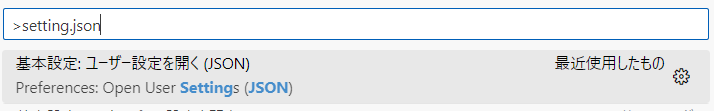setting.jsonを開きます。setting.jsonを開くためには、「Ctrl+Shift+p」でsetting.jsonを編集する項目を開きます。