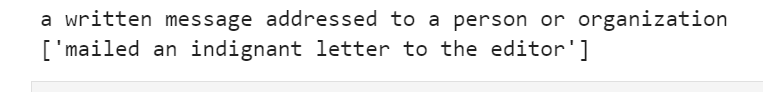Synset を取得したら、その定義や例文にアクセスできます。例文は、空になる場合があります。