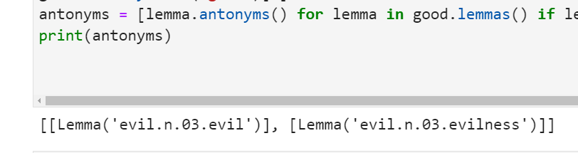 antonyms = [lemma.antonyms() for lemma in good.lemmas() if lemma.antonyms()]