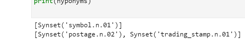 Synset は、共通の意味を持つ同義語の集合です。ある単語の Synset を取得するには、次のようにします。